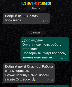 Вы оплачиваете оставшуюся часть суммы и получаете готовую работу
